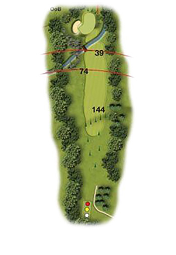 A short par 4 requiring a very accurate drive. A long iron lay up from the tee will leave a simple pitch to the green which is guarded by a ditch.