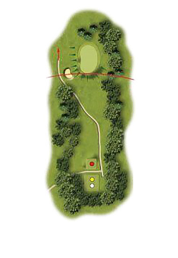 The double tiered green with severe slopes in front and at both sides demands an accurate shot with a medium or short iron, and it is important that the ball finishes on the same tier as the pin.